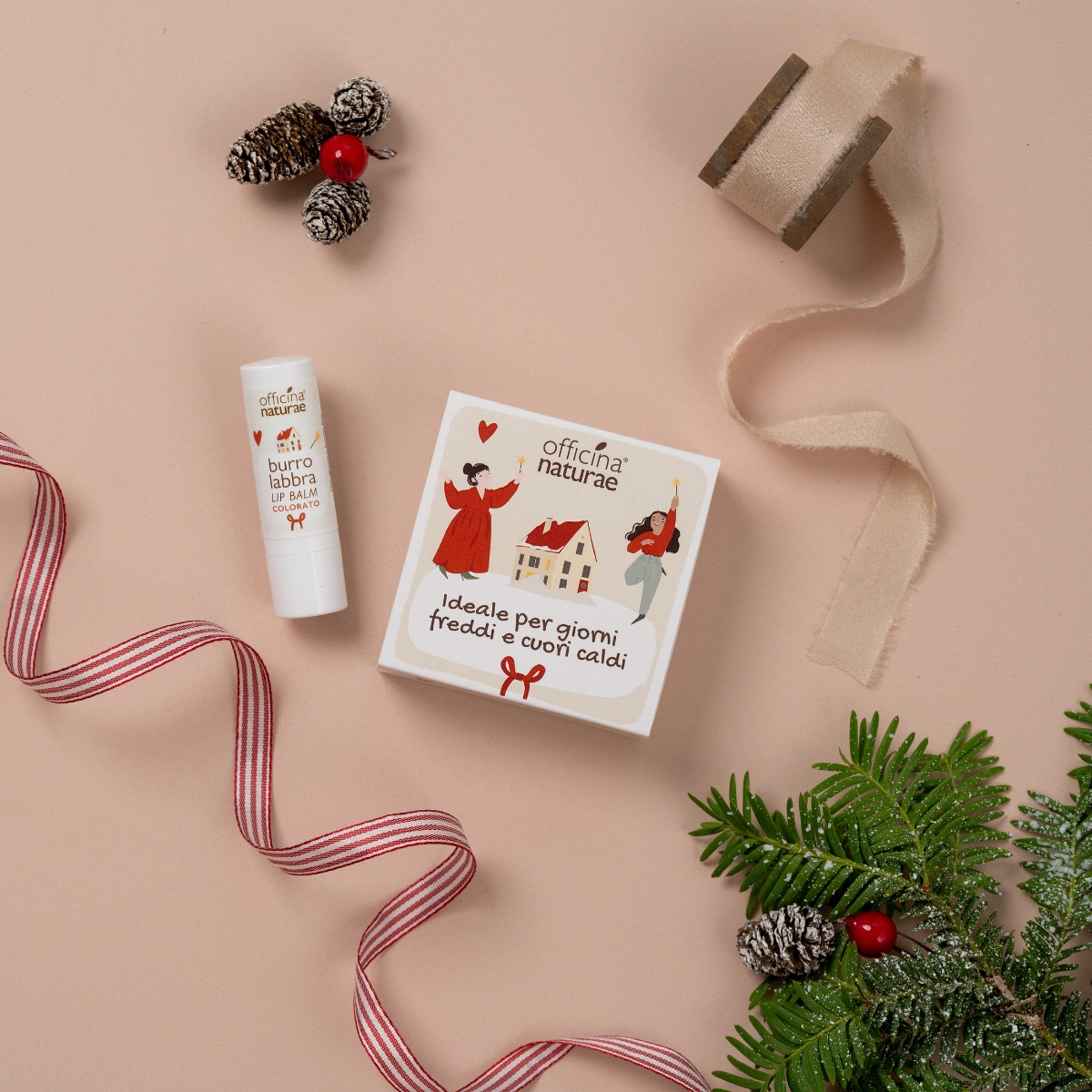 “Ideale per giorni freddi e cuori caldi”: un burro labbra naturale colorato con delicatezza, che nutre intensamente grazie ad ingredient vegetali.
