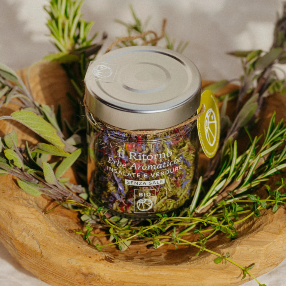 | Ingredienti | Rosmarino*, salvia*, timo*, origano*, santoreggia*, issopo*, fiordaliso*. |