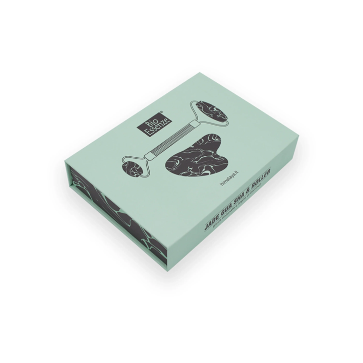 Il cofanetto Bio Essenze contiene un roller e una pietra Gua Sha. Il Gua Sha è un antico rituale di bellezza basato sui principi della medicina tradizionale cinese.