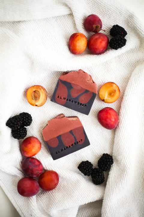 Ciliegie e torrone danno vita ad un sapone artigianale dolce e fruttato che ti avvolgerà in un caldo abbraccio durante questo autunno