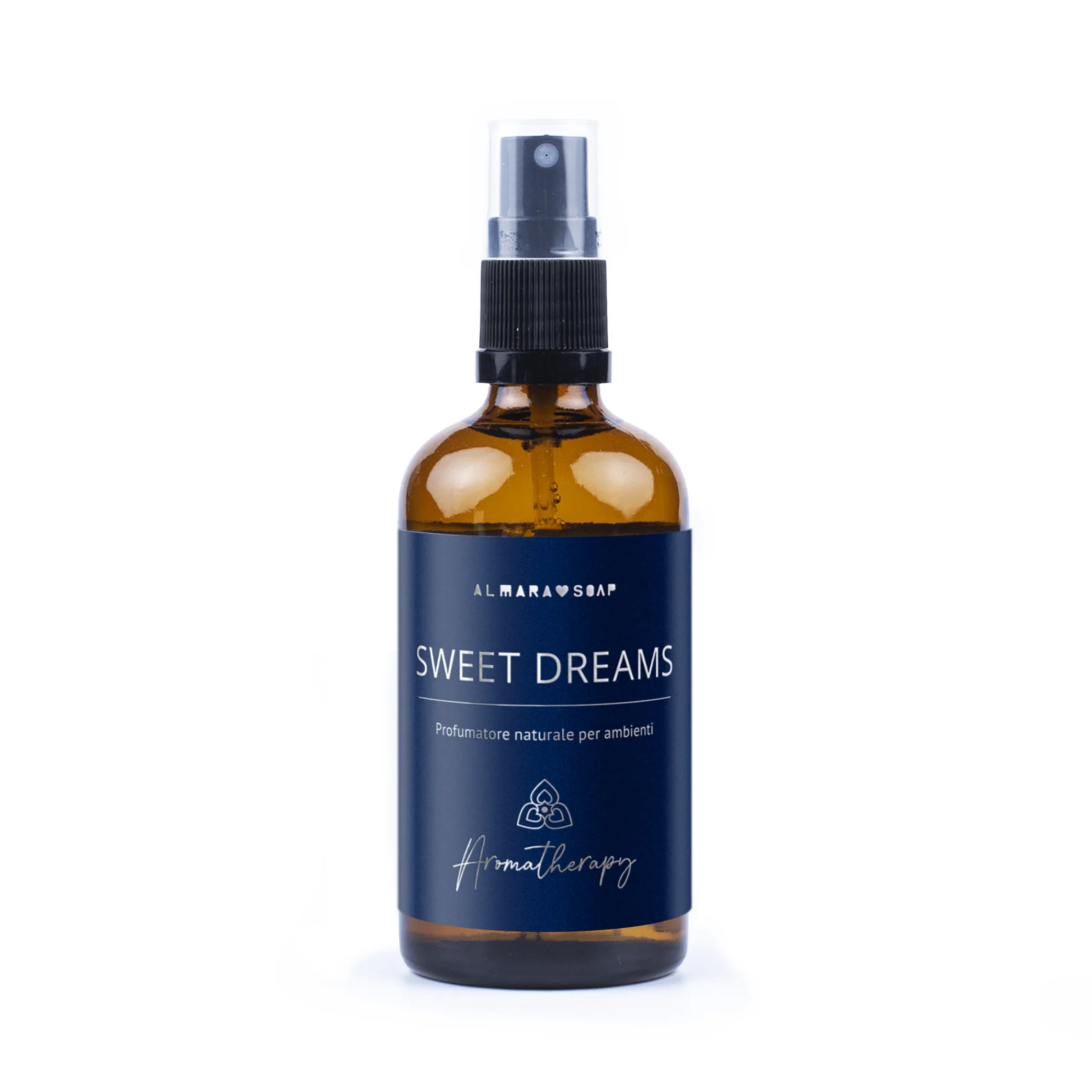 Sweet Dreams è uno spray per ambienti 100% naturale pensato per accompagnare i momenti serali e facilitare il riposo.